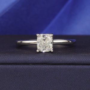 1 pc .33 Carat Cushion Cut Diamond (VVS1 Clarity; J Color) GIA Report Number: 2407256721 Side Stone: 14 pcs (approx.) .01 Carat Diamonds (VSI Clarity; FG Color) Halo: 15 pcs (approx.) .005 Carat Diamonds (VSI Clarity; FG Color) Metal: PLATINUM Pt950 Ring Size: 6 (Can be resized 1 size bigger and 1 size smaller) Weight: … Continued